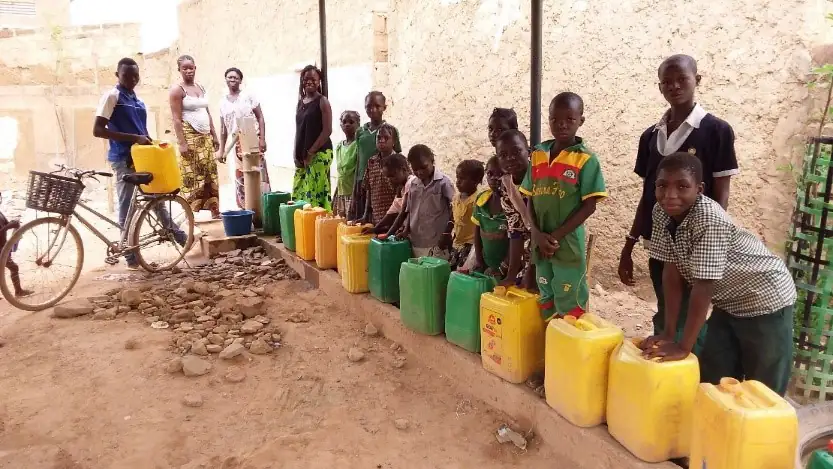 L’eau est une denrée rare à Ouagadougou, elle est vendue à un prix élevé , et souvent inaccessible aux parents des élèves de ces zones rurales. En saison des pluies, il existe des mares dont l’eau est impropre à la consommation humaine. L’objectif a donc été de fournir un accès à l’eau potable aux enfants et aux familles de ces écoles paillotes. Cet accès a permis en outre d’introduire des plantations dans les écoles en question.