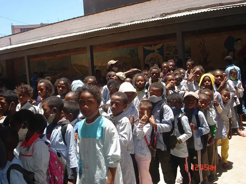 Sœur Marie-Annick Labrousse, infirmière originaire de Limoges, religieuse de la Congrégation « Les filles de charité », s’occupe depuis 25 ans du dispensaire Saint-Vincent-de-Paul à Tanjombato, banlieue de Antananarivo (Tananarive en français), la capitale de Madagascar. Ce centre sert 1240 repas par jour aux enfants les plus pauvres du quartier (entre 4 et 16 ans), ainsi qu’aux personnes âgées ou handicapées. Il abrite également une école, de la maternelle aux classes professionnelles, une crèche et un centre de santé. C’est au niveau des enfants abandonnés et de leur scolarité que nous agissons.