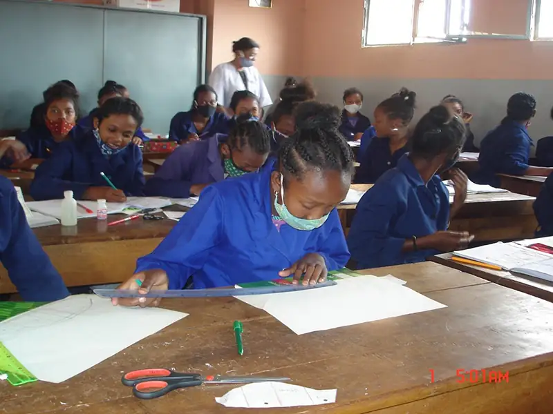 C’est une formation pour les filles venant de familles nécessiteuses qui ont le niveau C.E.P.E. Après les trois ans de formation, les jeunes filles passent un examen, et si elles réussissent, elles ont un diplôme agréé par l’État.