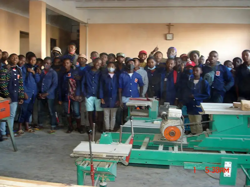 C’est un atelier d’apprentissage pour les garçons où 71 jeunes garçons reçoivent une formation professionnelle pendant 3 ans de menuiserie. À la fin de leur formation, l’école offre des outils et une attestation pour pouvoir déjà gagner leur vie. Ils fabriquent des tables, des chaises, des tabourets, etc.