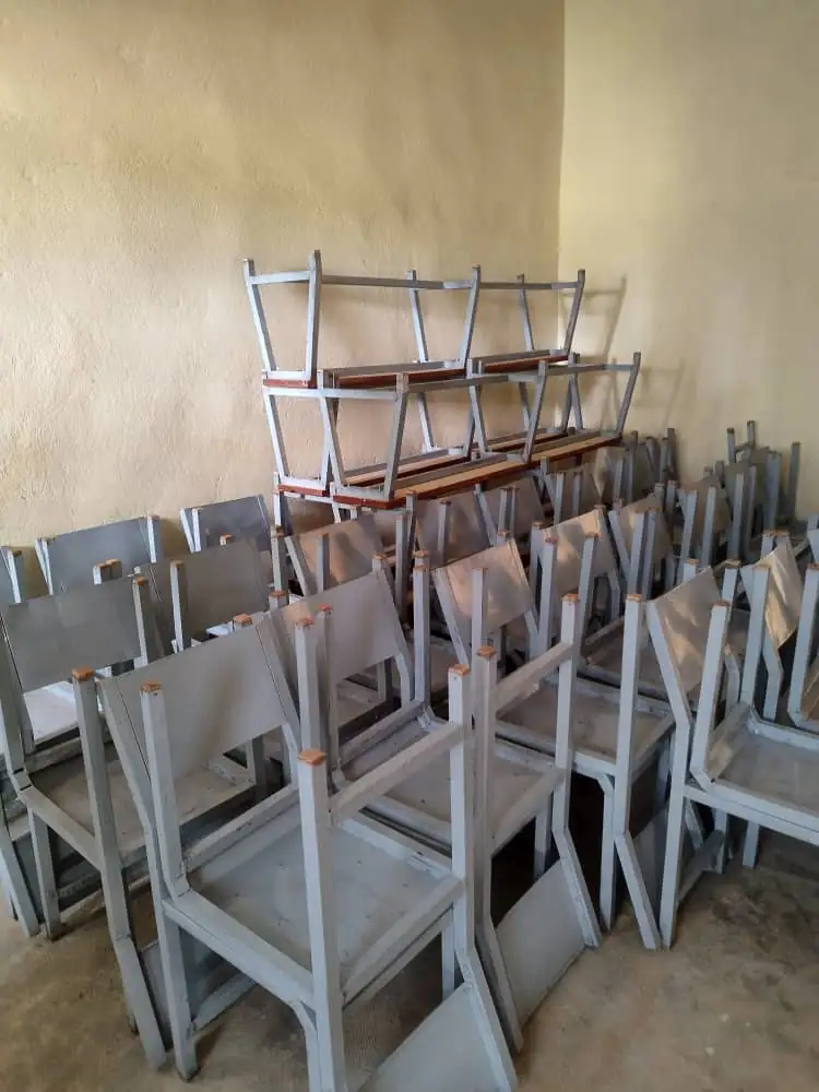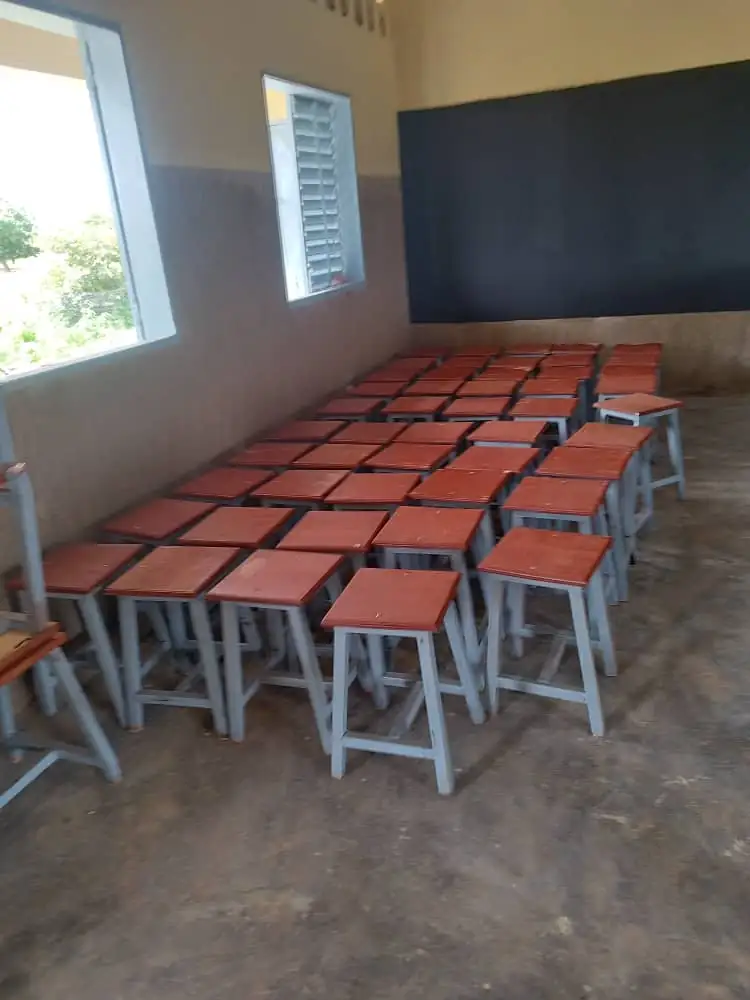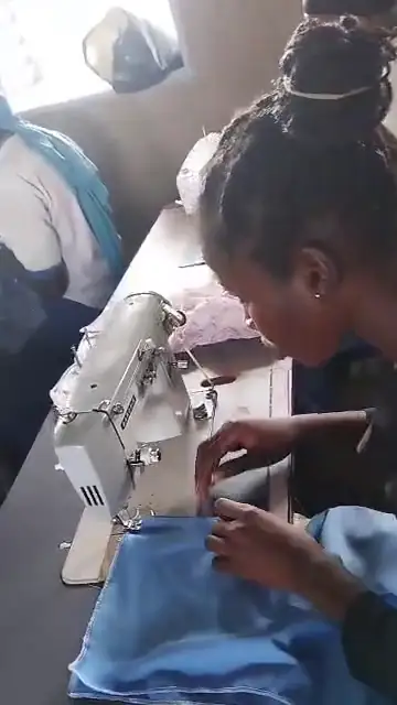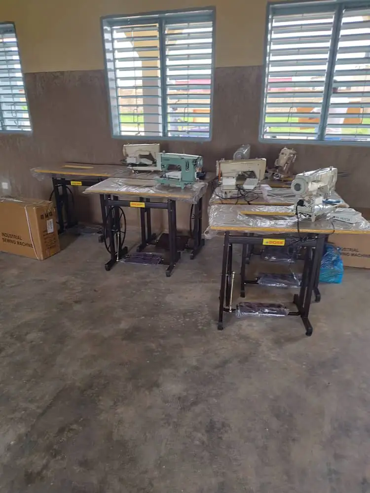 Grâce à votre soutien nous avons pu équiper les locaux avec 14 machines tête blanche, 2 machines tête noire, une piqueuse et une surfileuse. Nous avons 5 tables de coupe et une table de repassage. Des fers à repasser, des ciseaux de coupe et le matériel de tracé. Nous avons pu aménager aussi un coin d’essayage pour les clients. Merci pour tout.