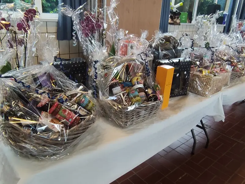 En fin de repas, la tombola phare « aux cartes de 6 jeux réunis » a maintenu le suspense auprès des candidats gagnants, désireux de repartir avec une des plantureuses corbeilles alimentaires, excellentes bouteilles, orchidées, un des appareils de cuisine offerts par notre amie Nathalie…