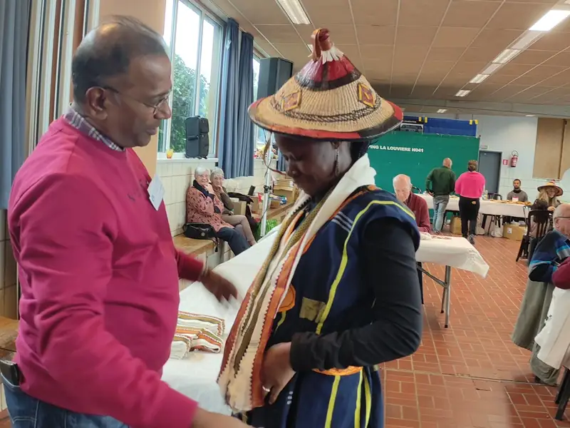 Autre attention délicate : Thomas a remis l’écharpe indienne traditionnelle à une vingtaine de bénévoles discrets et fidèles chaque année à différents postes. Sans oublier les anciens présidents Charles Flohimont et Michel Gillain.