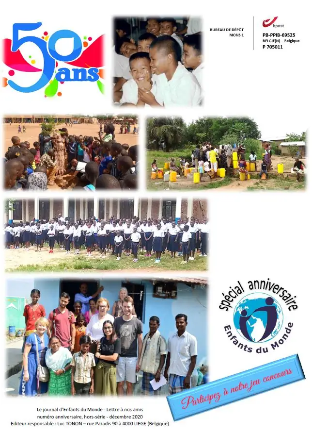 Vous pouvez encore vous le procurer et surtout nous soutenir en versant € 14 par exemplaire sur le compte BE91 2700 2853 0076 d’Enfants du Monde ASBL avec la communication « Journal 50ème »
