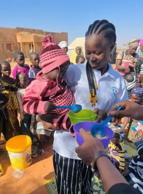 Alice Nikiéma, médecin spécialisée en nutrition, connaît bien le problème. Elle a été aidée par Enfants du Monde pour ses études, et maintenant, elle se tourne à son tour vers sa communauté pour les aider avec le projet SONGTAABA – ce qui signifie « entraide ». Elle témoigne d’une terrible réalité: des enfants qui pleurent de faim, des mères épuisées qui n’ont rien à offrir à leurs petits, des familles brisées par la peur et la misère.